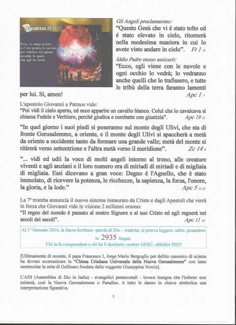 COLPORTAGE / EVANGELIZZAZIONE ATTRAVERSO LA STAMPA: GESU' TI SALVA! Lo SPIRITO SANTO Ti guida a LUI, attraverso la SACRA BIBBIA. Credi-ubbidisci! Ti battezzi e vieni salvato/a. Vivi conforme il Teovangelo. Sei un/a cristiano/a praticante. Vieni purificato/a, giustificato/a. La vita di perfezione cristiana è una comunione giornaliera con GESU' CRISTO. Vivere in santità!